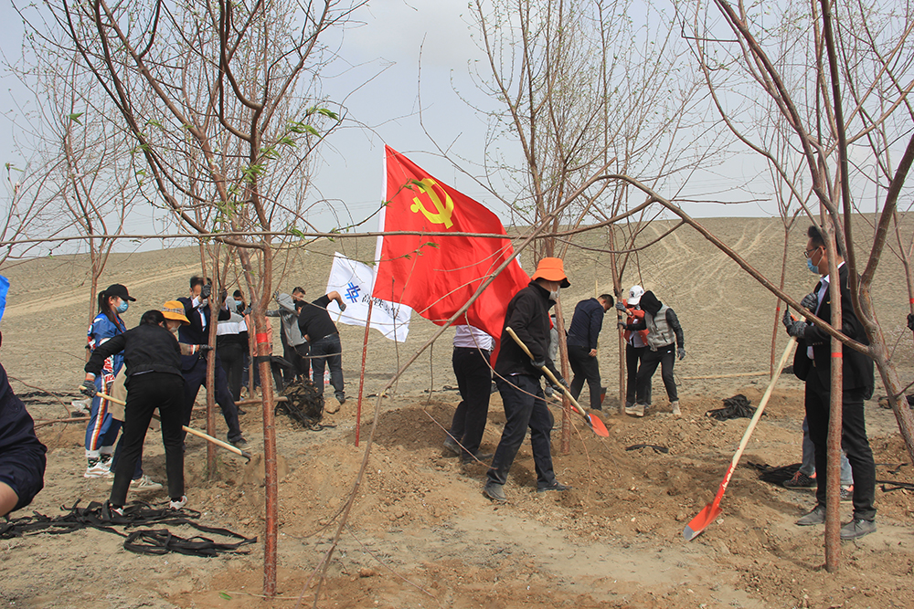 春和景明四月天,植樹添綠正當時。為進一步貫徹落實自治區(qū)黨委“樹上山、水進城、地變綠、煤變氣、天變藍、城變美”重要指示精神,積極改善兩河片區(qū)生態(tài)環(huán)境,烏魯木齊經(jīng)濟技術開發(fā)區(qū)高鐵樞紐綜合投資(集團)有限公司于4月14日攜手共建企業(yè)——天耀偉業(yè)和海康威視兩家企業(yè),在新疆天山兩河谷文化旅游生態(tài)區(qū)——生態(tài)修復(一期)工程范圍內開展了“攜手植綠護綠 造福兩河片區(qū)”的主題活動,共有近百人參加了此次義務植樹活動,為春天的兩河片區(qū)播下一片新綠。